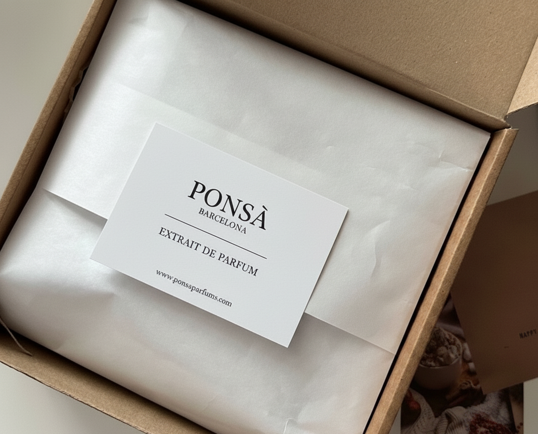La experiencia Ponsà comienza en la yema de los dedos. Papel con textura, vidrio pesado y etiquetado manual. Diseñamos cada detalle para que abrir la caja sea tan memorable como el propio aroma.